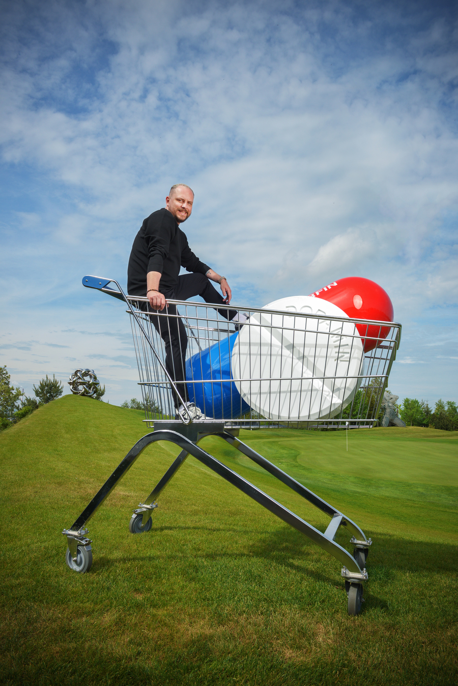 Soukromí sběratelé díla zapůjčují nebo občas uspořádají prohlídku pro uzavřenou společnost. A tohle je zase náš způsob: na pár dní v roce zavíráme golf a zveme vás na přehlídku špičkového současného umění v naší galerii pod širým nebem.