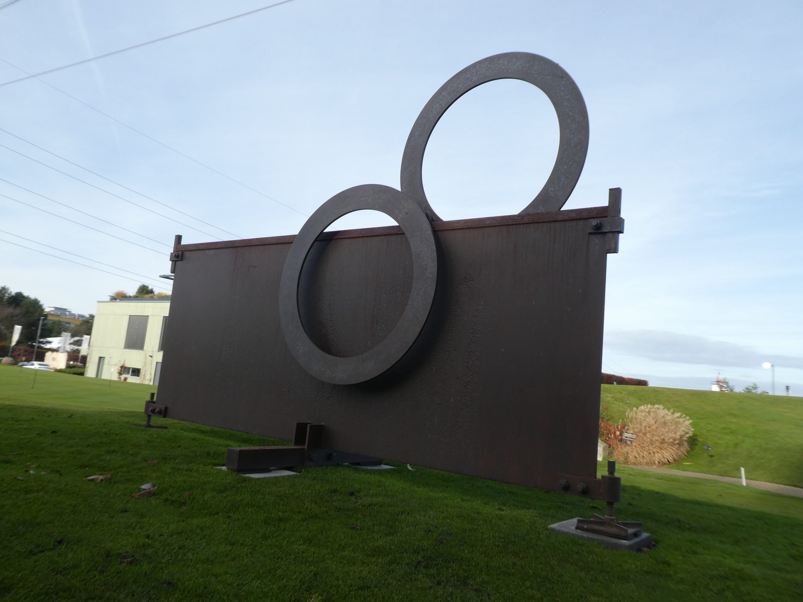 Instalace, kterou můžete sami rozpohybovat, no není to nádhera? Stačí jen lehce zabrat rukou, a kovové kruhy na této monumentální plastice se vydají na svou planetární pouť po hostivařském galerijním vesmíru. Pak už je jen stačí sledovat z různých úhlů a pozorovat, jak se postupně potkávají s dalšími díly v okolí klubovny. A jak dílo charakterizoval sám autor? „Plastika Planety – Kruhy reflektuje Keplerovy zákony pohybu planet jak výtvarně, tak i emocionálním zážitkem. Hmota dvou prstenců se valí po hraně ocelové desky jakoby ve stavu beztíže. V plastice jsou zakódovány i fyzikální jevy setrvačnosti a tření, které v astronomii řešil Isaac Newton. Je tam zašifrována také věta syrakuského matematika a fyzika Archiméda: ‚dejte mi pevný bod ve vesmíru a já pohnu Zeměkoulí…‘, neboť opravdu stačí pomocí páky naklonit rovinu a válec s kruhy (planetami) se rozjede…,“